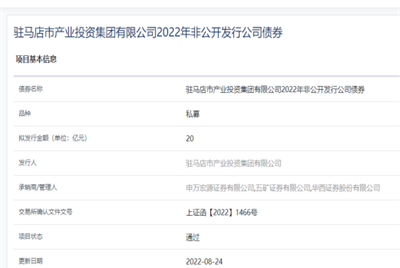 駐馬店市產(chǎn)業(yè)投資集團有限公司成功獲批非公開發(fā)行20億元公司債