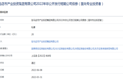 成功獲批非公開發(fā)行20億元短期公司債面對復雜嚴峻的經(jīng)濟形勢,駐馬店市產(chǎn)業(yè)投資集團有限公司緊緊圍繞市委、市政府戰(zhàn)略部署,2022年6月8日,集團非公開發(fā)行20億元短期公司債成功獲得上海證券交易所批準。此次非公開發(fā)行短期公司債券20億元,不超過1年期(含1年),債券品種為私募,承銷商為國泰君安、光大證券…