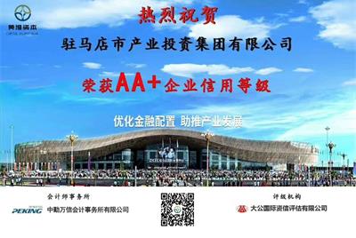 駐馬店市產(chǎn)業(yè)投資集團(tuán)有限公司 喜獲AA+主體信用評級